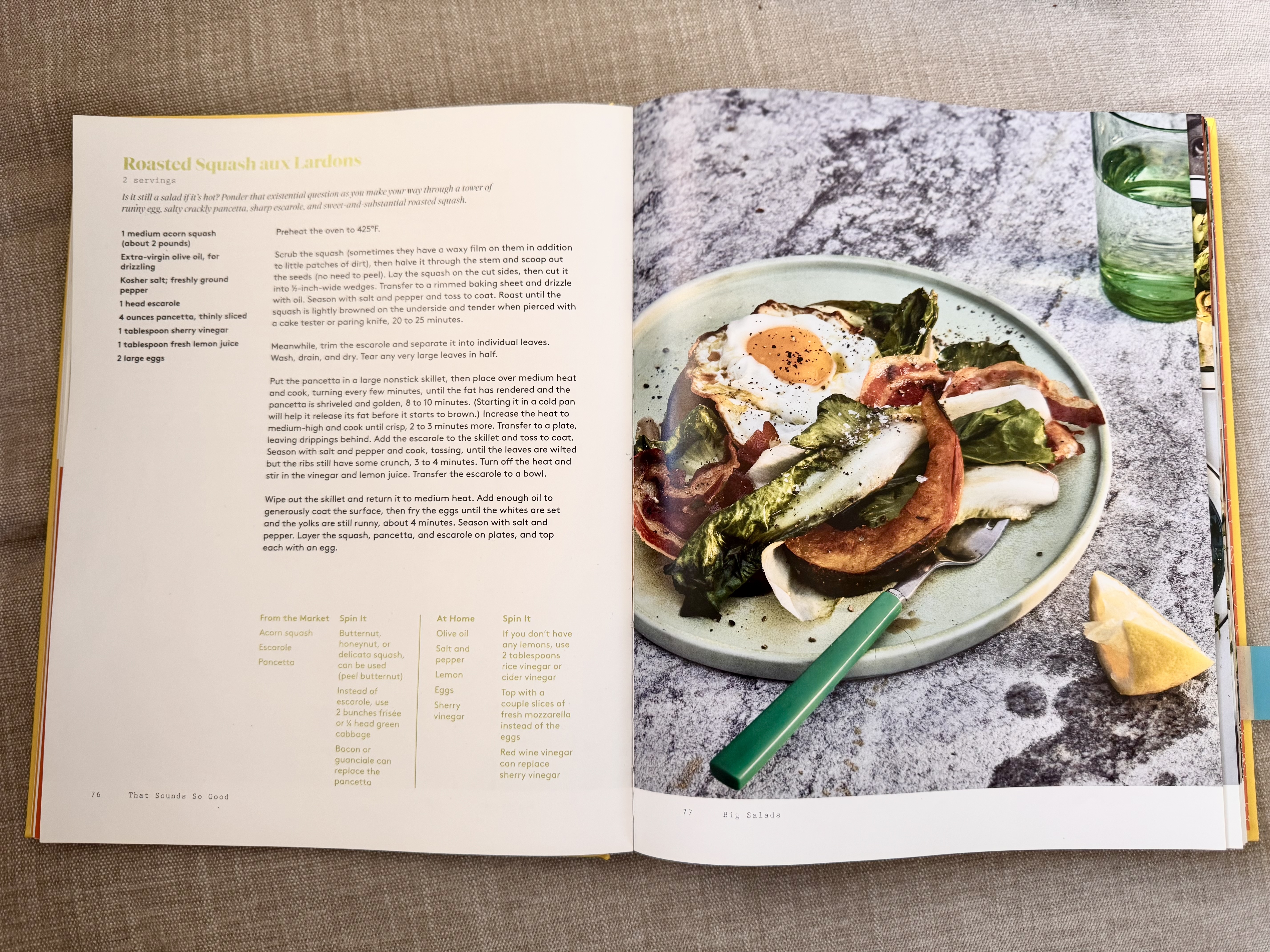 Carla's cookbook has been uniquely positioned in our household as a reliable, everyday option, for quick weekday dinners and long weekend projects. Today I wanted to crack open a new section which I'd neglected (salads, of course). This is an oddball recipe that has a lot of potential, and maybe even a new fall favorite for its use of acorn squash (#gourdmaxxing).
